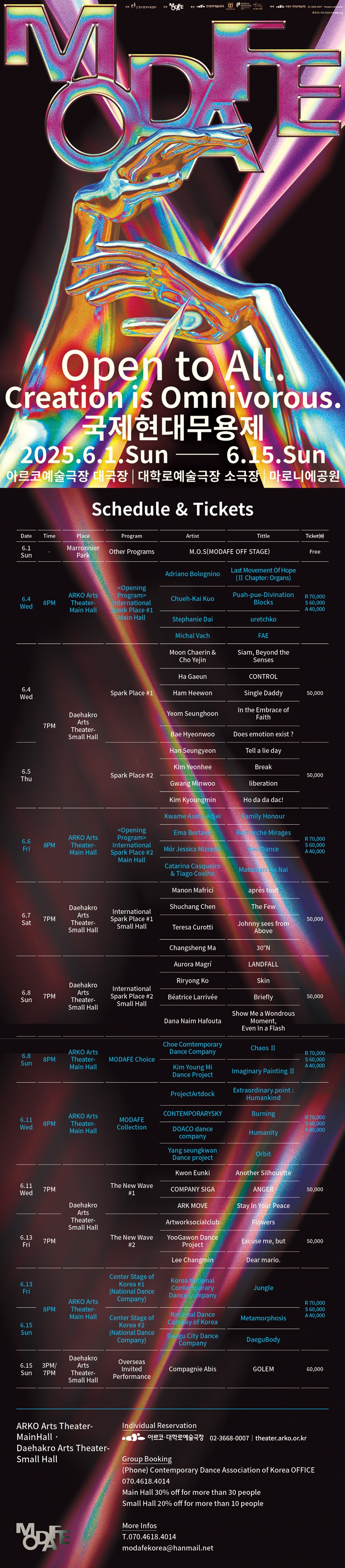 MODAFE 2025 (제44회 국제현대무용제) 일정표 공개